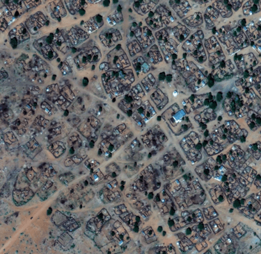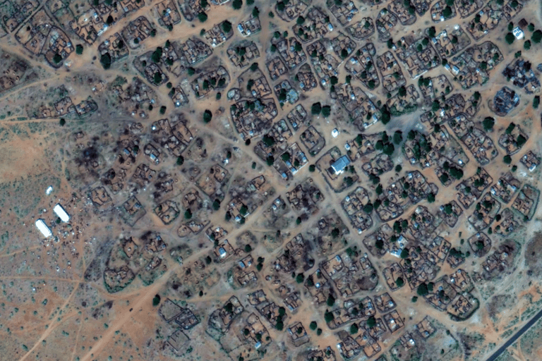 People gather on the outskirts of a village northwest of al-Fāshir, Sudan, October 30, 2025. (AFP/Vantor/Handout)