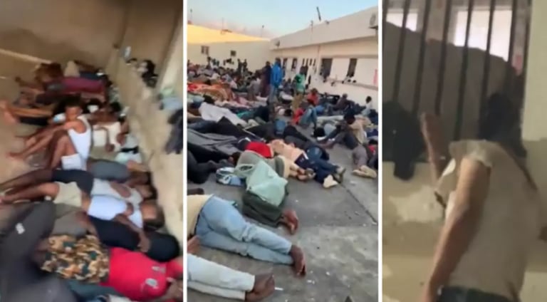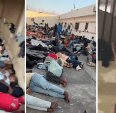 Screenshots from videos published in early September by Refugees in Libya showing the living conditions of refugees imprisoned in the detention centre in Tobruk, Libya. (X)